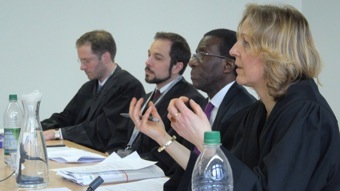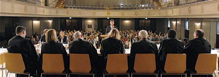Two nations take their matter to the International Court of Justice. They have a hard-fought argument over a mass surveillance program, terrorism, and a remorseful spy. What sounds like recent reality of the spying scandal concerning Edward Snowden is a fictional setting, grounding the most important competition in international law. Representing one of these made-up nations, four young students from Germany fight as lawyers from round to round of this legal professions’ Wimbledon against the world’s best universities to reach the finals in Washington.